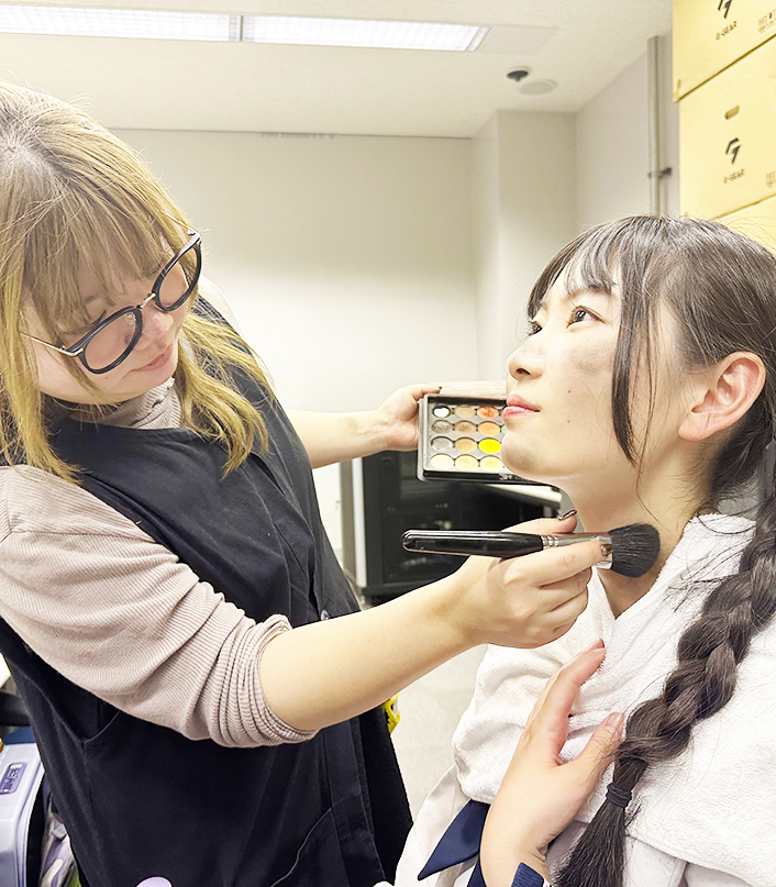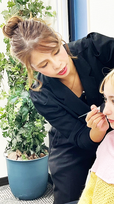 【Profile】生年月日:12月7日出身地:愛知県出身校:名古屋ビューティーアート専門学校資格:美容師免許【Career】ショートムービーなど映像作品を主に携わる。また、スチール撮影等でのヘアメイクや振袖メイクなども得意とする。 |